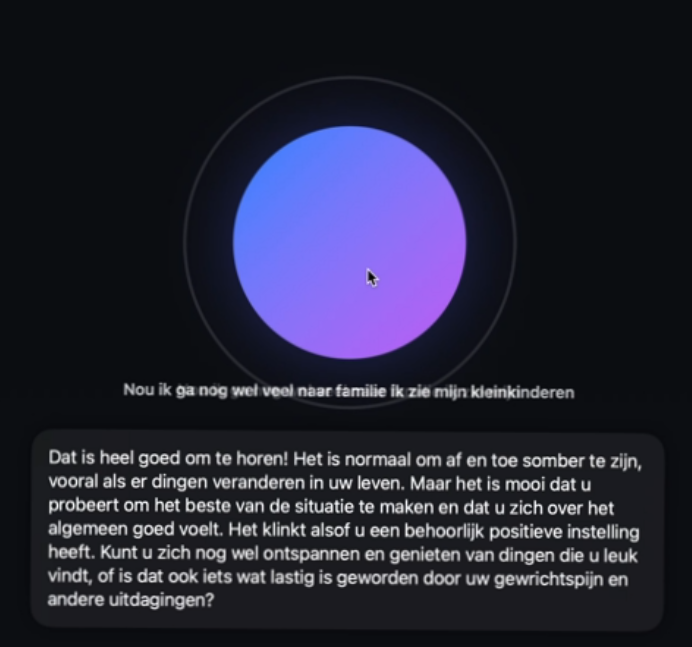 Welzijn.AI is a new digital solution for continuously monitoring the mental wellbeing in the vulnerable elderly. Currently in the form of a mobile app, its ultimate aim is to be embedded within a furry cat toy through a speech-only interface. The Beatrix AI virtual assistant is an implementation tailored for geriatric assessments support, in a collaboration with LUMC Geriatrics. [ Beatrix AI demo video ]